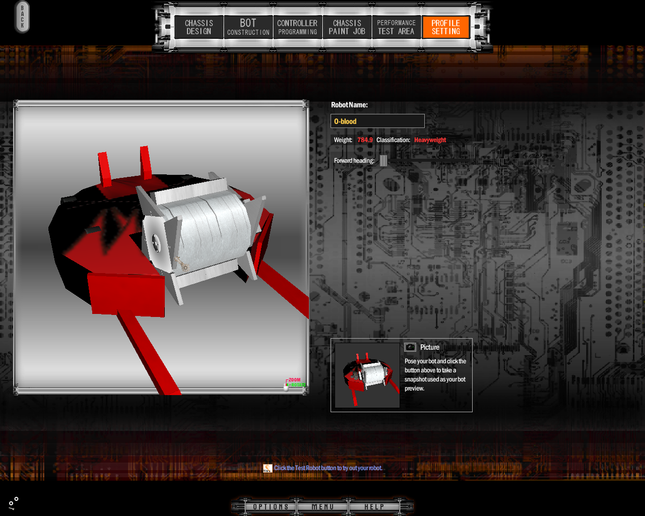 As for the bot, make sure you dont clip batteries inside each other. Besides, you would only need 2 black batteries in this situation. Also, make sure to put supports on both sides of the drum so that it is IRL legal and remove the typhoons so that it is just beaters. Also, you can make your own skins if you export a template rather than using the tools in the paint shop tab. It makes chassis robots look a lot cleaner. Other than that its an alright first build.