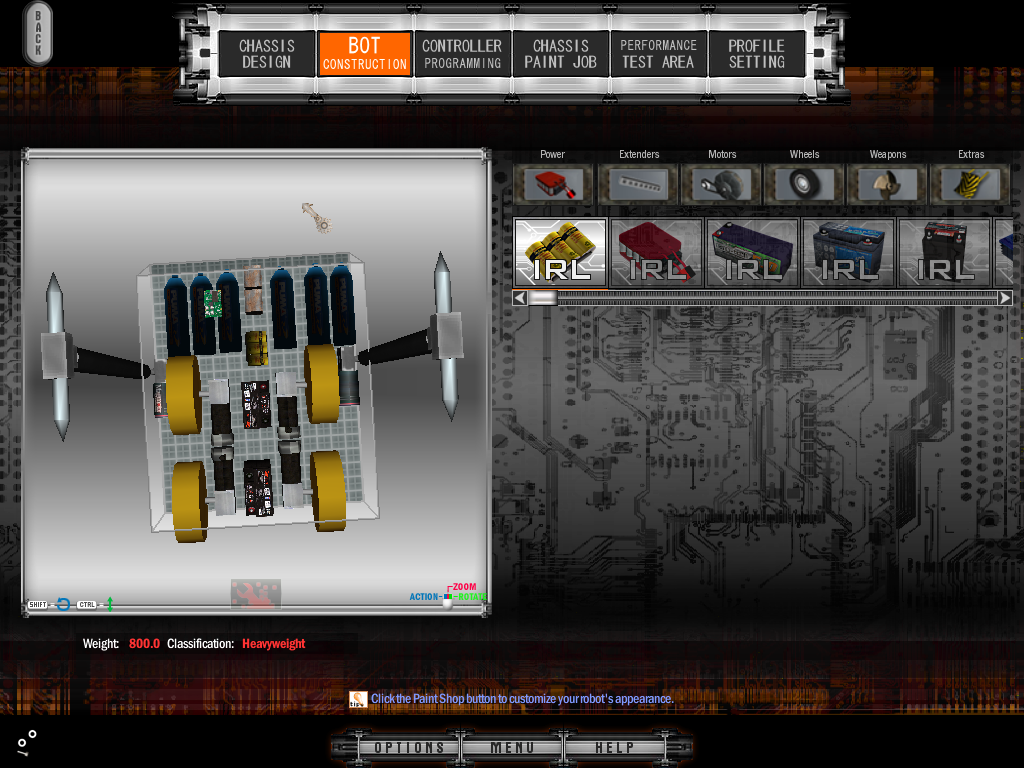 This showcase is dead like my grandmother. anyway lets have look at my superheavyweight "Low Blow" [ Quoting of attachment images from other messages is not allowed ] Inspired By that one Pyramid bot M.O.E beat back in Season 4. 2 DSL 4 SledgeHammers on a DSL Bar powered by a 4 Mag Motor. Here is a non IRL bot aka your worst nightmare "LockDown" [ Quoting of attachment images from other messages is not allowed ] [ Quoting of attachment images from other messages is not allowed ] A Vertical Spinner bot with 8 Typhoon Teeth powered by Etek Motors. Skirts to get under the bots to get a good hit. This actually was once a IRL bot so i Do plan on making it IRL Again