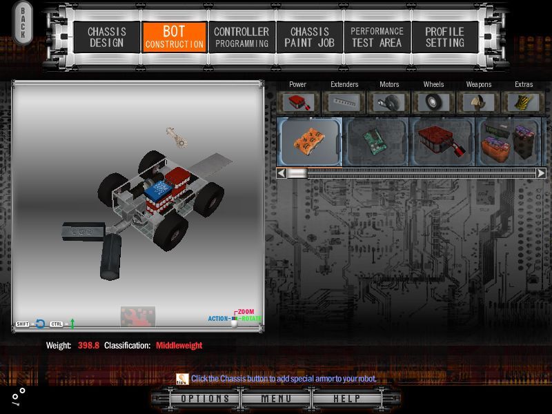 Good idea, bad realisation : not effective against poker in tabletop, this bot gives a good fight on king of the hill but it wide structure made it  an easy target on the chaos of the hill.