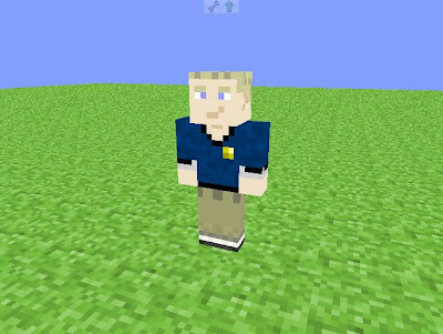 I make my skins according to the clothes I'm wearing at the time when I make the skin. My current one is my grey hoodie and green 'retro' shirt, with my belt, jeans, and 'hi-tech' trainers.