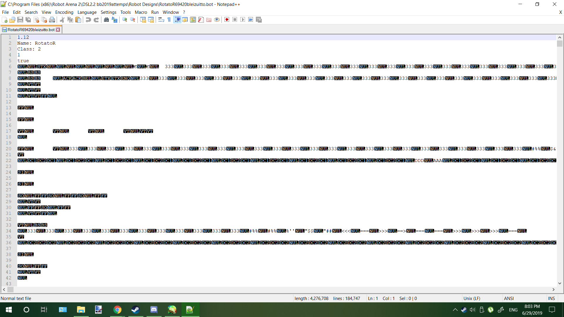 Talking about the black part and datas that have symbols which make it look garbled, they also appear if you put a chassis skin I think, especially if you increase the skin size on the image editor program. I tend to encounter it on the bot file