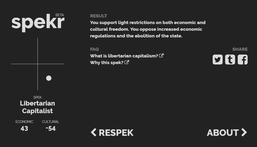 Some of the questions are better but it's a pain in the arse when they ask you how you feel about 2 things in the same question, an example being, "Do you think that euthanasia and suicide should be legal?". I agree with one but not the other.