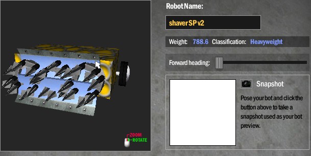 I believe I had an AW rammer thing and a Crawler as my first two bots. Whoever is the Secret Santa of gets my bots, you'll probably have a good chance at winning.